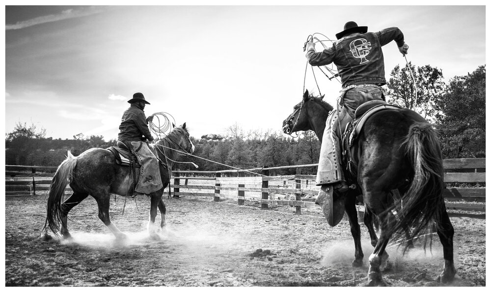 One of the cowboys on the Pichfork T Ranch in Sisters, Oregon, Accompanied by Ashanti, a former champion rodeo champion, roping a small calf for a branding.