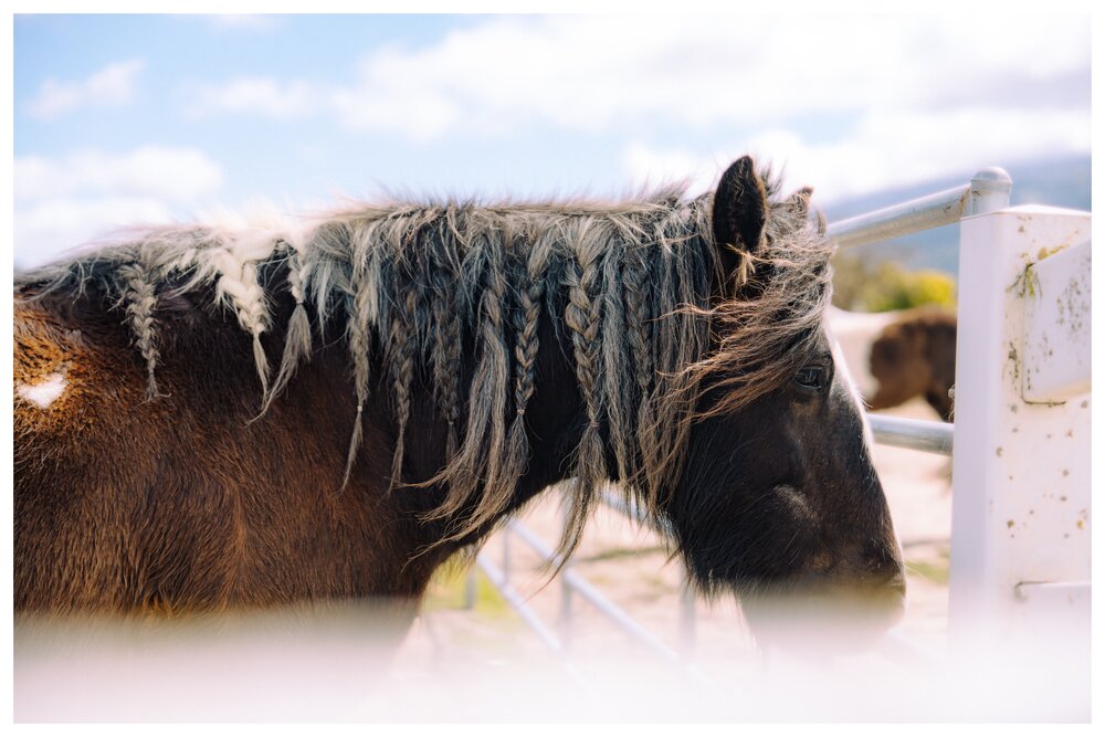 Beautiful, messy braids on a Horse outside of Big Sur, California.