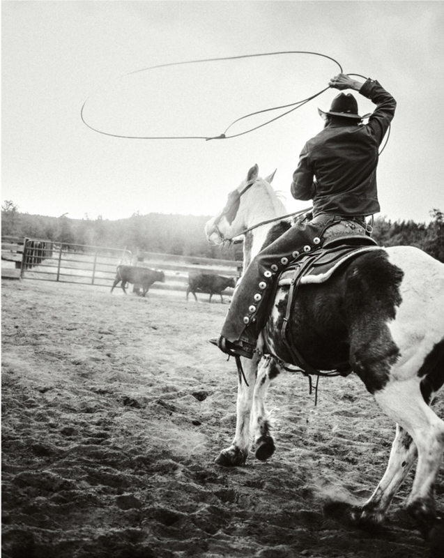 Ross Alex, a cowboy in Sisters, Oregon, mid rope during a branding in the Spring of 2023.
