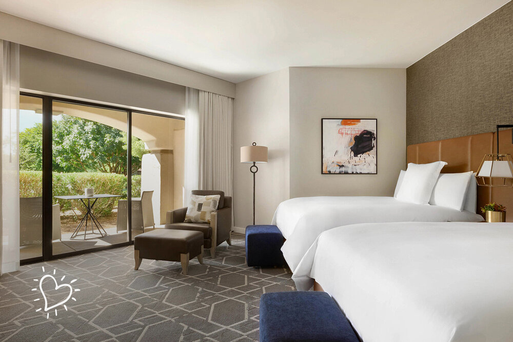 Relax and recharge in an elegant standard room at the five-star Fairmont Scottsdale Princess hotel