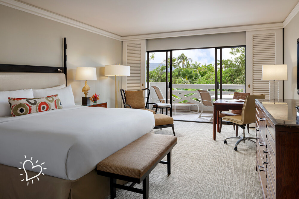 Beachfront bliss awaits on the Big Island with a stay in a serene standard room at the five-star Fairmont Orchid Hawaii.