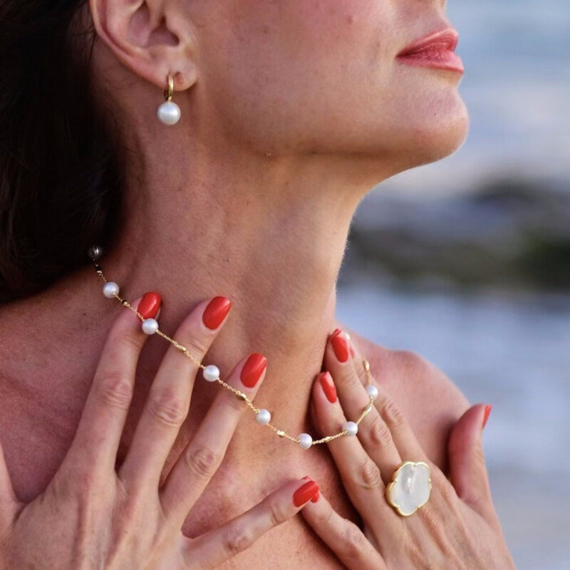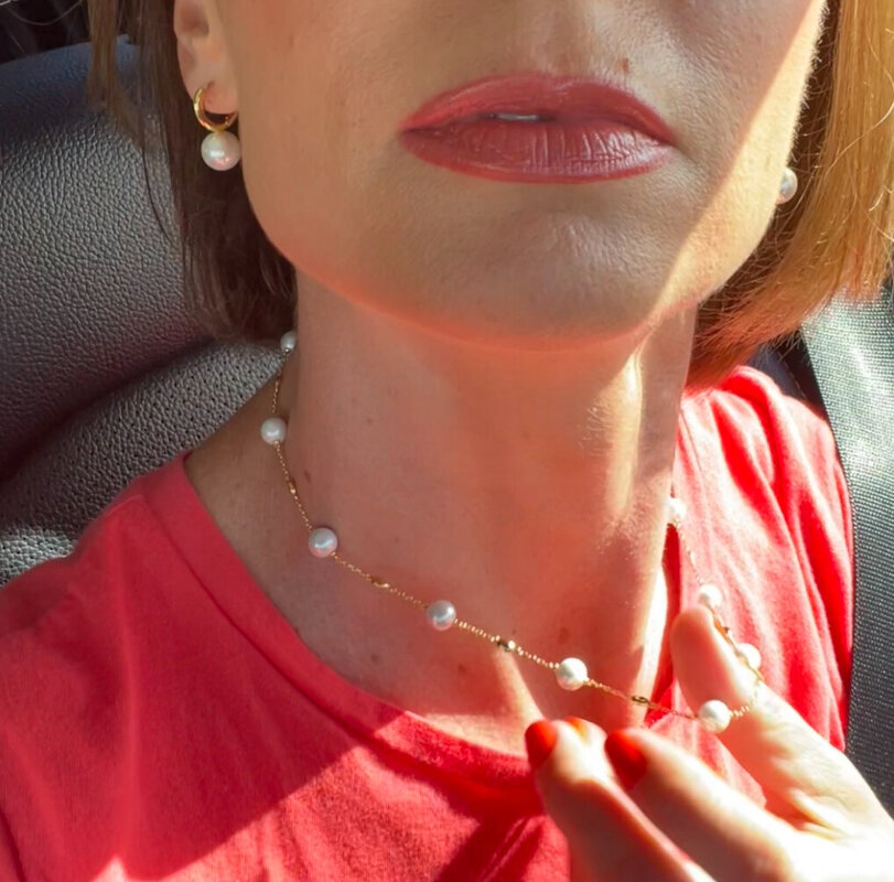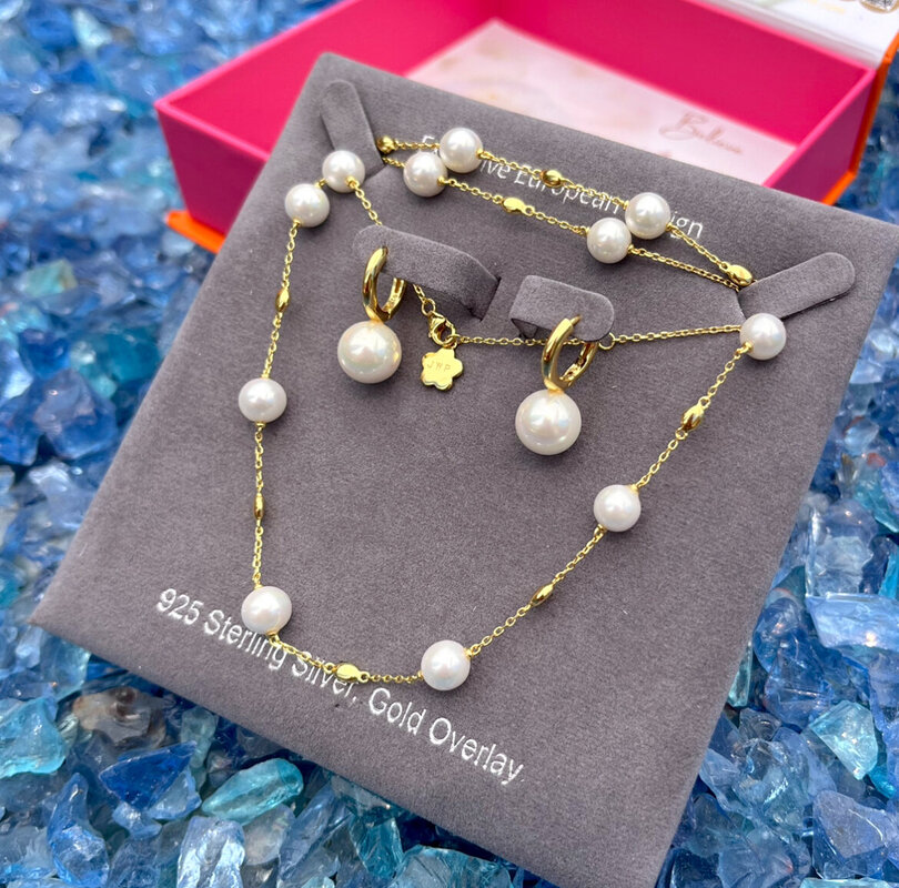 Modern Pearls Necklace & Earrings Set in Yellow Gold