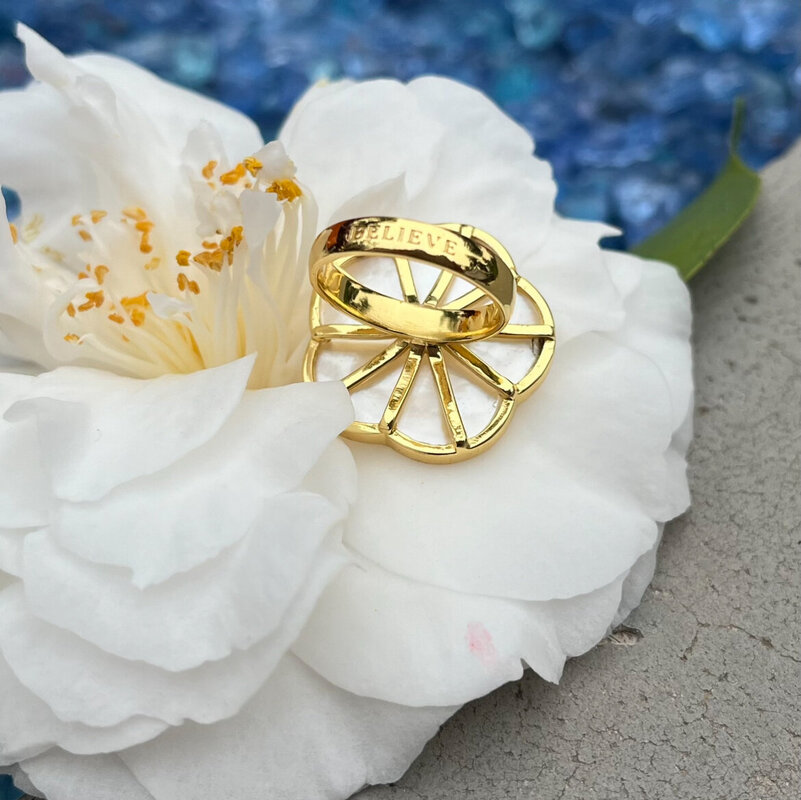 Mother-of-Pearl "Believe" Ring Size 7