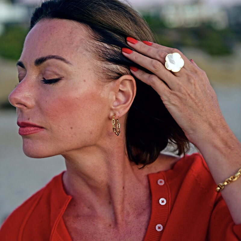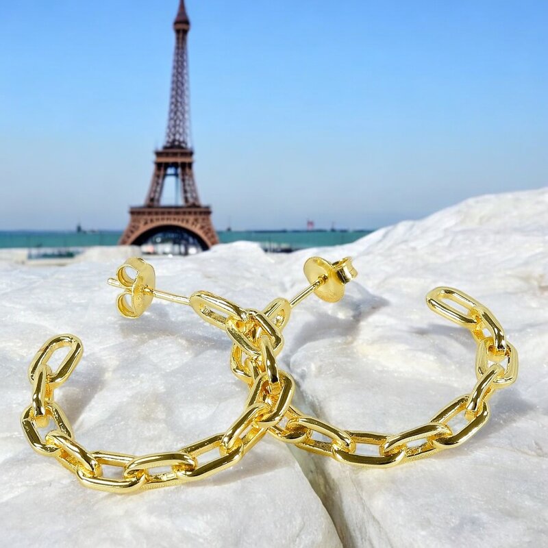 These on-trend hoop earrings feature a unique chain-link style inspired by the classic paper clip design. Their bold yet elegant look adds a captivating brilliance and modern edge to any outfit.
