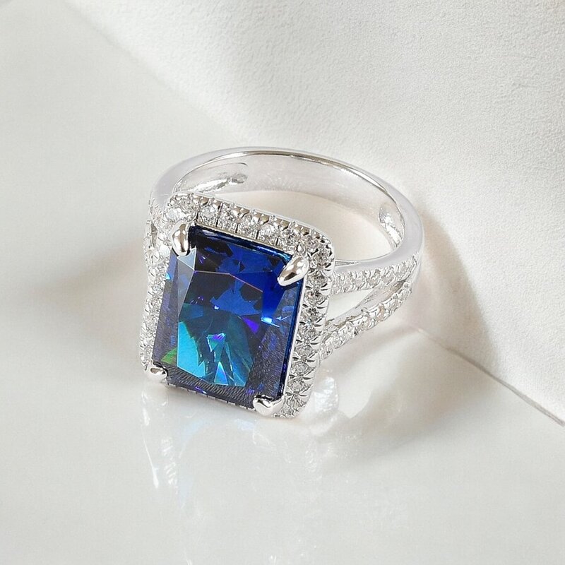 The Royal Sapphire Elegance Cocktail Ring is a masterpiece designed to exude luxury and grace. This stunning ring features a dazzling ice-cut blue sapphire stone at its center, the vibrant sapphire hue reminiscent of the royal blue skies, captivating and rich in depth. The unique ice-cut shape of the stone ensures maximum light reflection, creating a radiant, sparkling effect from every angle, making it the perfect statement piece.